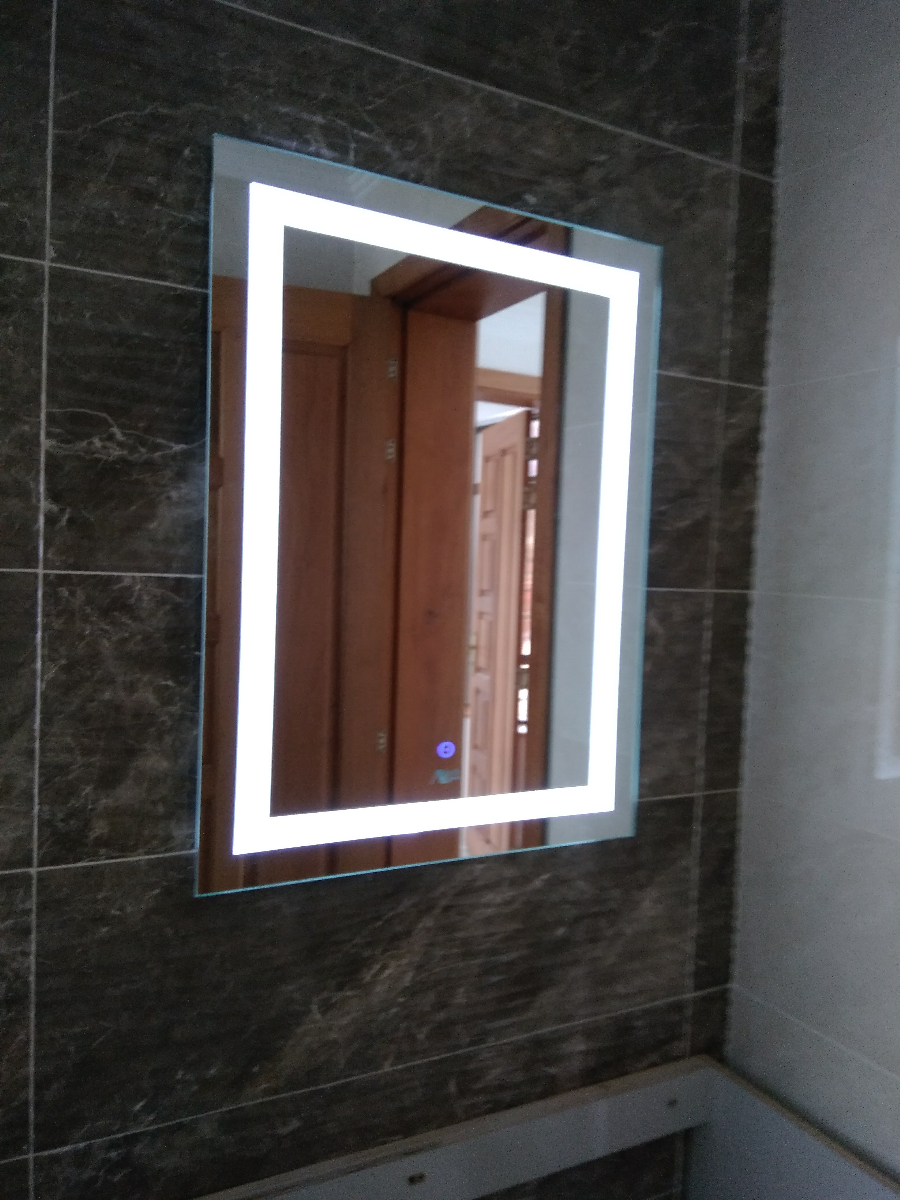 Shape: Rectangular Surface: High Reflectance 5mm Mirror Edging: Chamfered/bevelled. Lighting: Cold White/ Warm White lighting. Lumens: Led Strips. Switch: Touch Sensor Button. Power: AC direct powering / Rechargeable Batteries.
